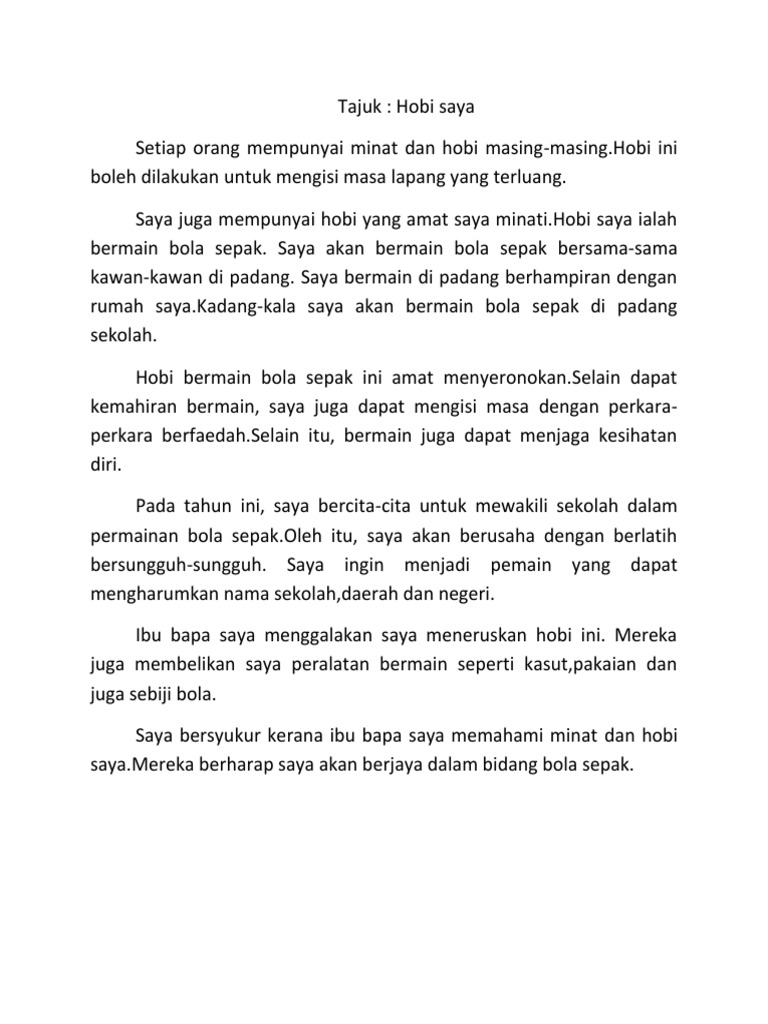 6378 views jun 16 2021 bahasa melayu tahun 3 menulis karangan. Hobi saya ialah bermain bola sepak. Harini saya kena buat tajuk karangan pasal hobi saya nasib baik ada.